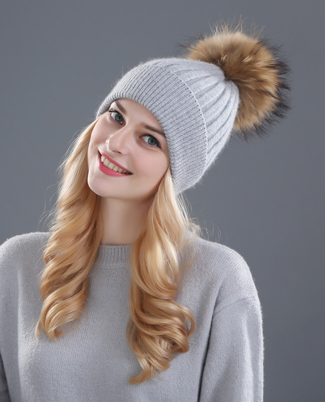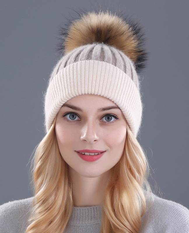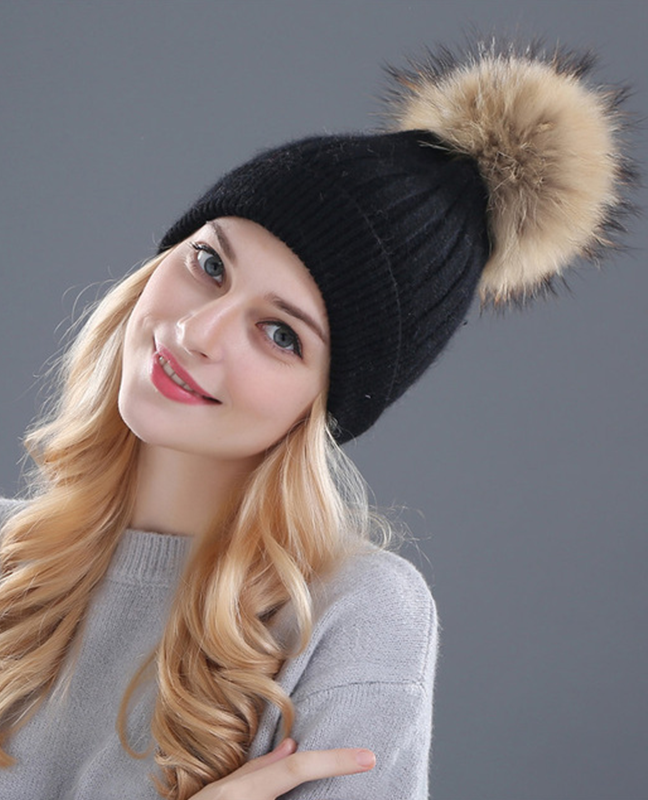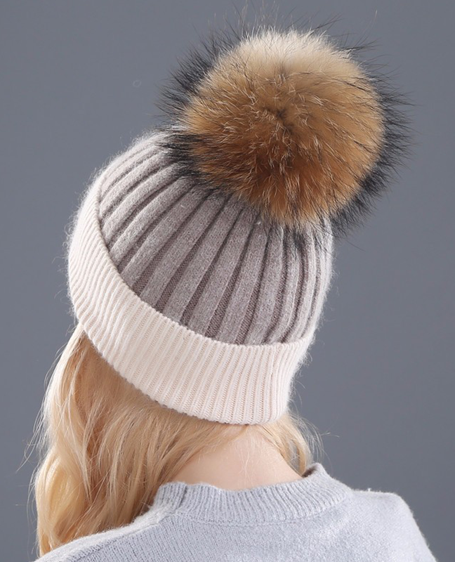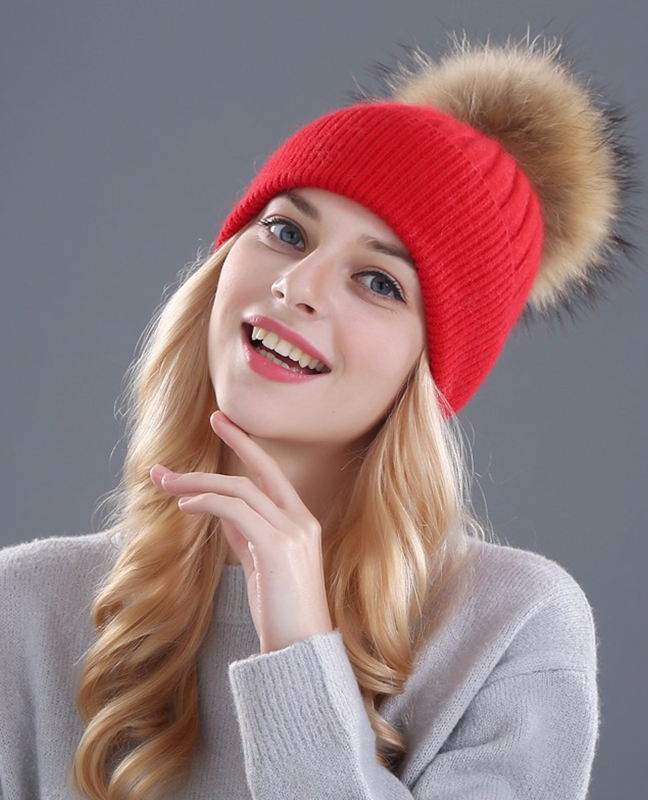 Rhinestone Natural Fur Beanie