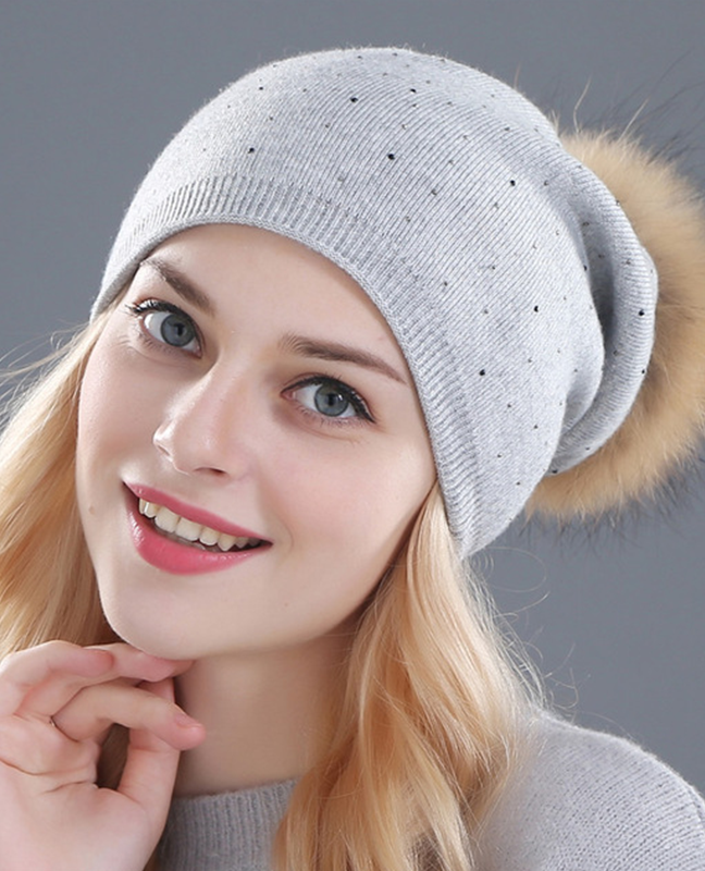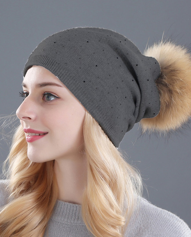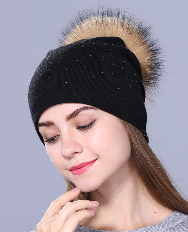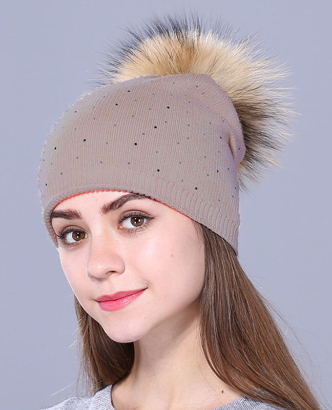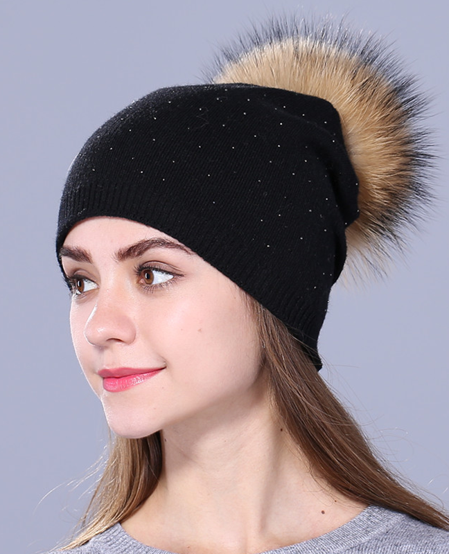 knitted Raccoon fur Beanie